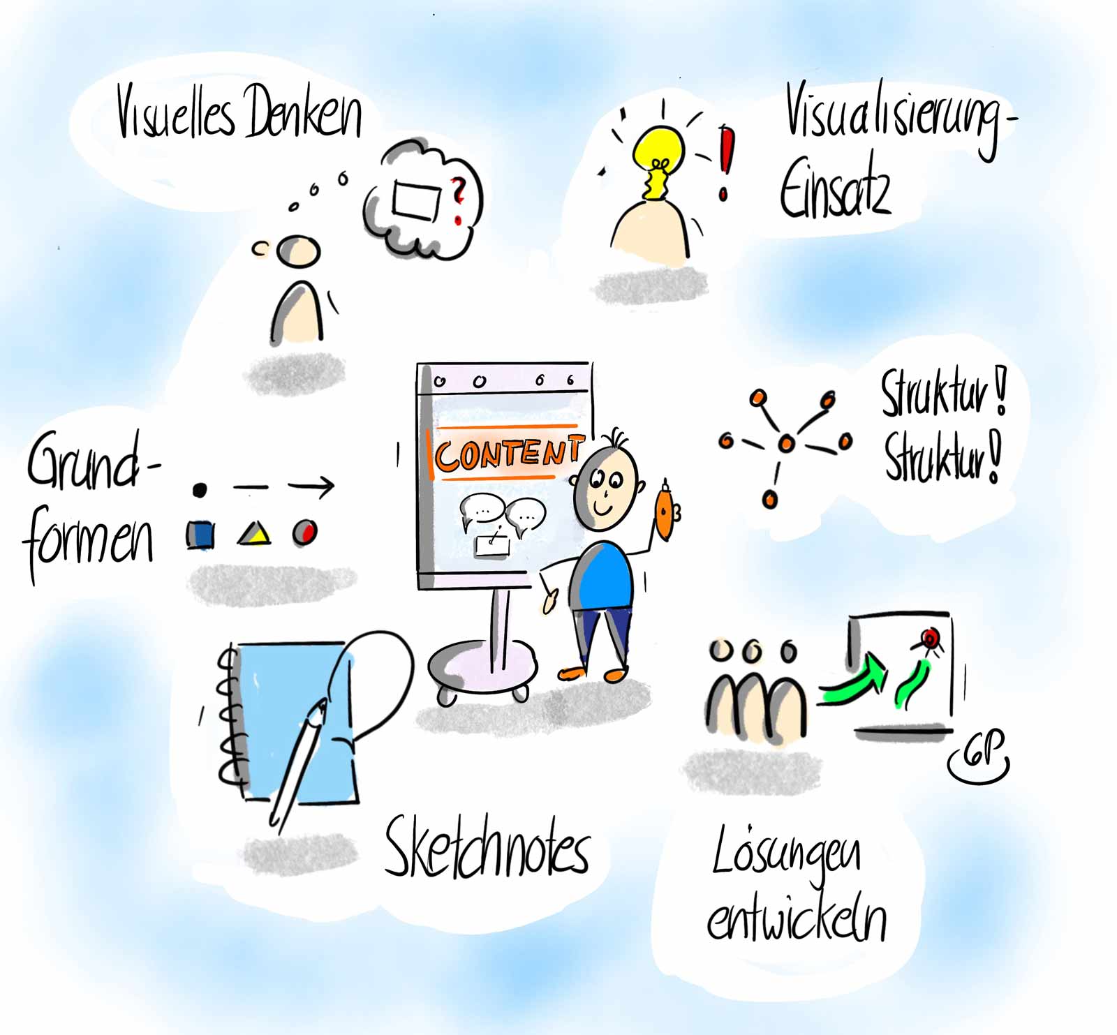 Wie schaffe ich es, komplexe Sachverhalte einfach darzustellen? Wie kann ich Abstraktes greifbar machen? Dies kann mit Hilfe einer alten Kulturtechnik – dem Zeichnen bzw. Visualisieren – hervorragend gelingen.